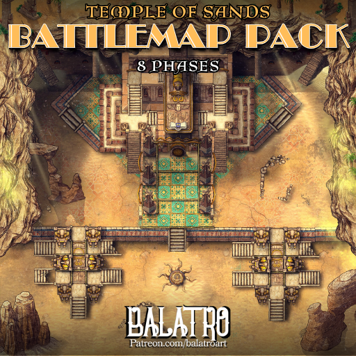 Buried deep below the vast desert, unearthed by a powerful sandstorm. This 8 phased battle map has our heroes fighting atop a slowly appearing forgotten ruin.