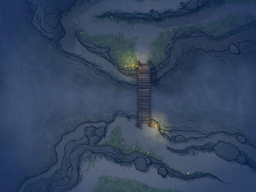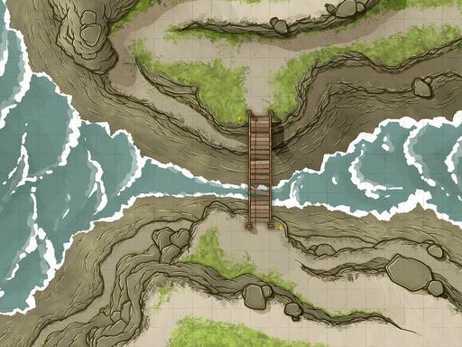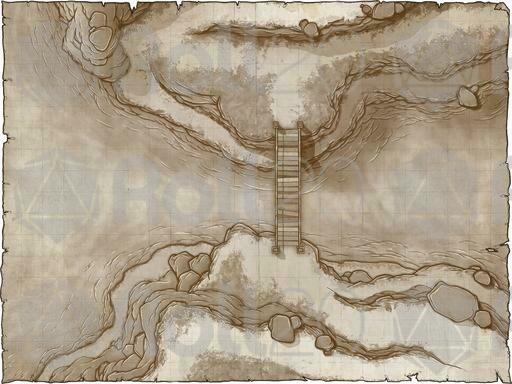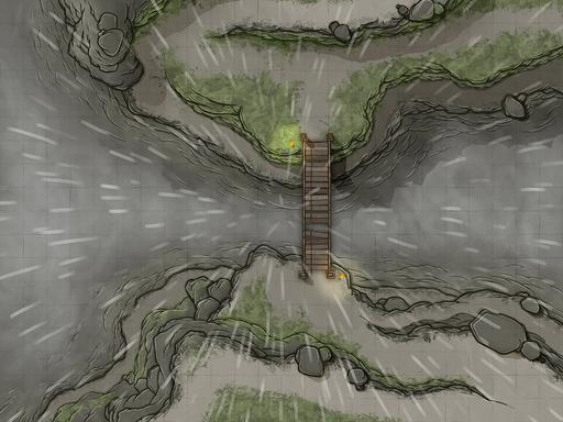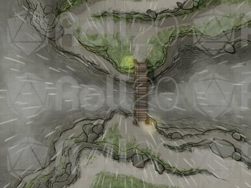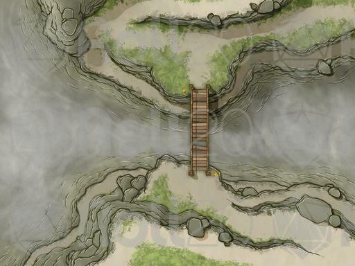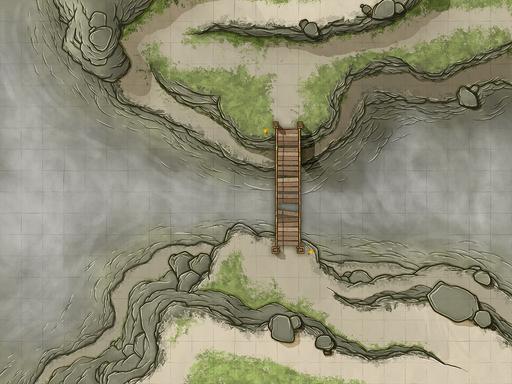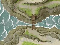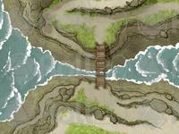 It is unavoidable. Every trip through the mountain eventually leads to one. It's mandatory that some falls off. And they're never built properly. This rope bridge leads over a deep drop. You've travelled the main path both east and west, and this seems to be the only crossing to the other side. The only paths that you have not explored yet are the winding paths that lead down, along the cliffs. You see a similar path across the gorge, perhaps it's the same. There is only one way to know for sure.