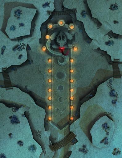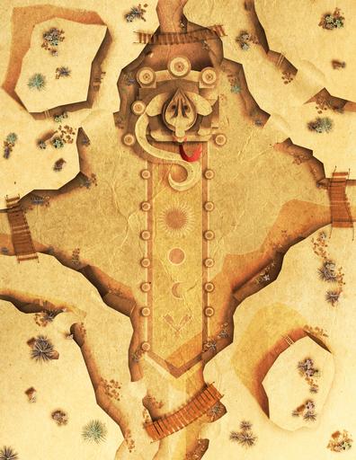 Ages of trudging in the deep sand under the hot sun make you not believe your eyes as you stand beneath the statue. Suddenly, a rumbling begins beneath your feet and a light begins to glow from the sandstone sun. The snake’s eyes alight with red and the torches burst into flame in a flash of heat and a rumble in the deep.