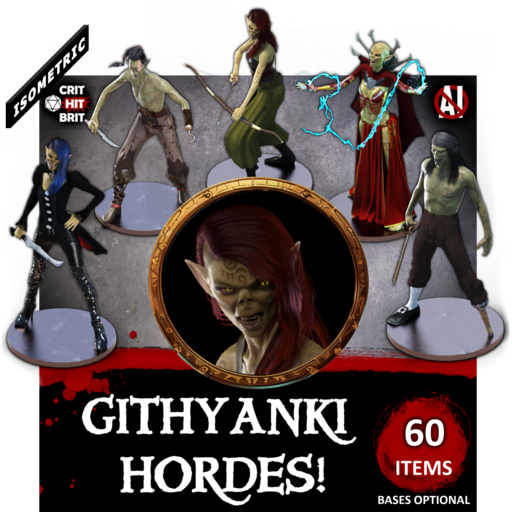 A set of 30 Isometric Gith tokens (each provided with and without a base).