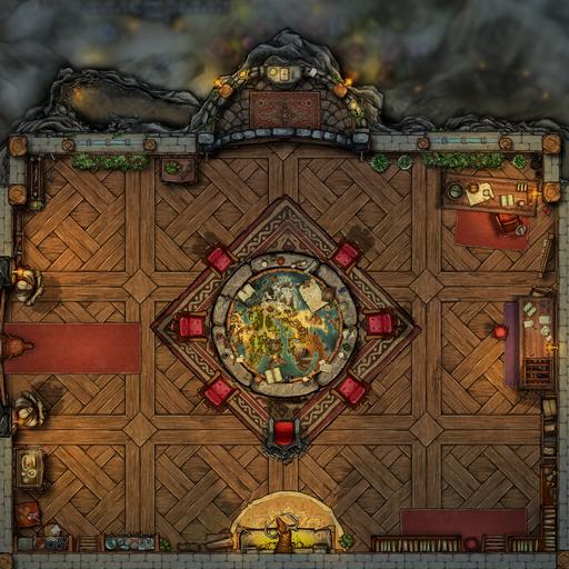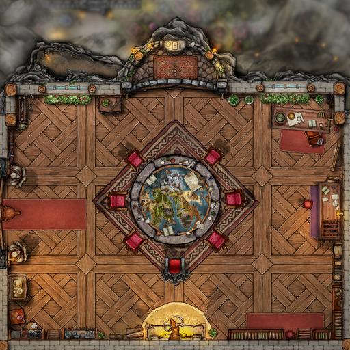 This extremely secure, private headquarters, is situated high up in the mountain top keep, overlooking the valley town below Only the most high ranking officials from across the continent have ever witnessed this room.