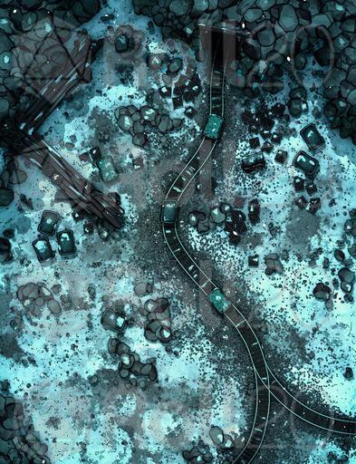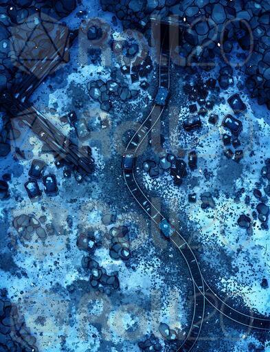 A set of 3 battle maps for any kind of adventure in the snow! Send your players to the chilly wilderness and make them battle their enemies all the while dealing with the frozen landscape. Just perfect for any kind of Winter setting.