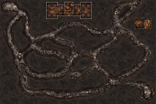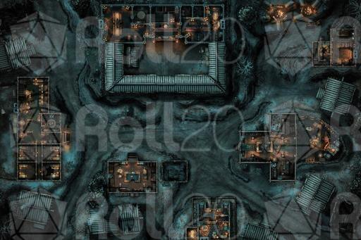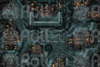 This map features eight interior locations you can explore with your players, in addition to a massive connected tunnel network under the town that spiders have infested! (Don't worry, I have a version without webs for your arachnophobic players)