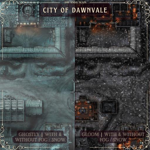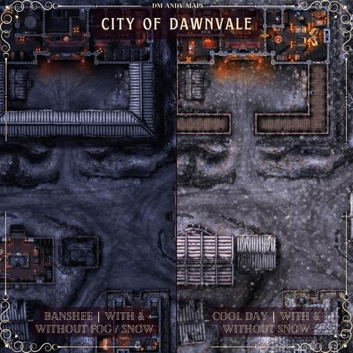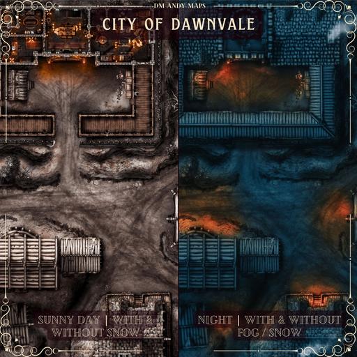 Hi everyone, and welcome to my City of Dawnvale map release! This massive 60x40 city map features Dawnvale, a mining city near a frigid mountain range. This map comes with 4 core variants: