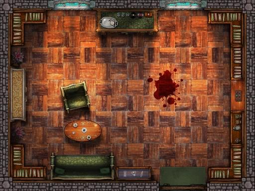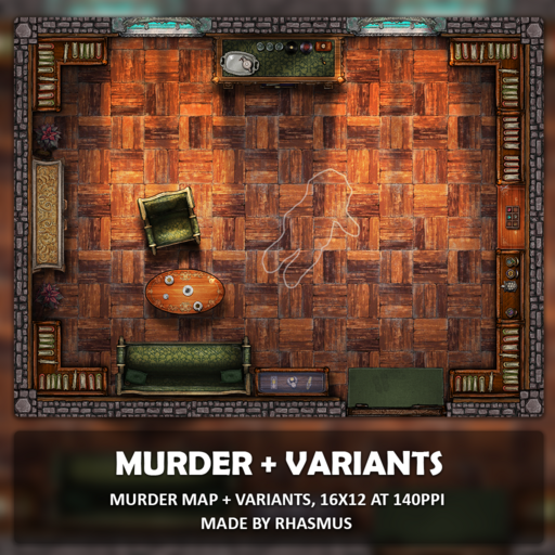 A mystery crime map with multiple variants : empty, blood, contour and blood with contour.