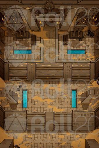 A set of 3 desert battle maps for an adventure under a scorching sun! Send your players to barren lands and make them battle their enemies in a place where the heat can also be their fiercest foe.