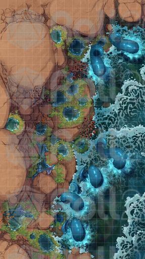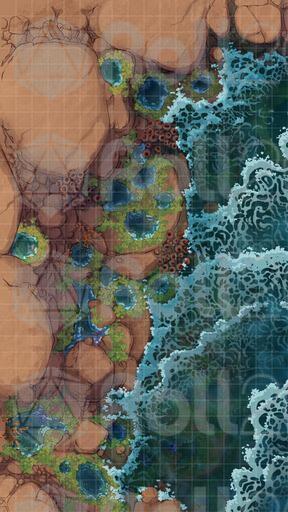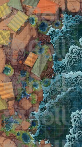 This cliffside beach is riddled with tide pools and slippery algae. It's a great place for encounters with mermaids or pirate brawls, and has plenty of places to hide shells and sea treasure.