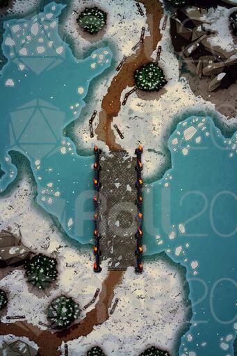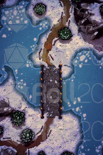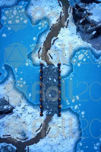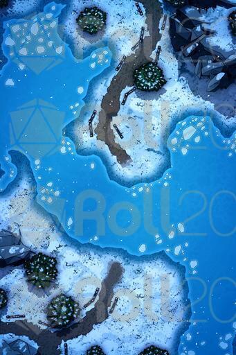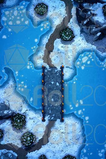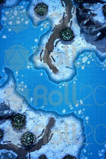 A set of 3 battle maps for any kind of adventure in the snow! Send your players to the chilly wilderness and make them battle their enemies all the while dealing with the frozen landscape. Just perfect for any kind of Winter setting.