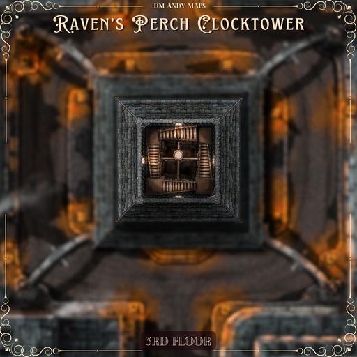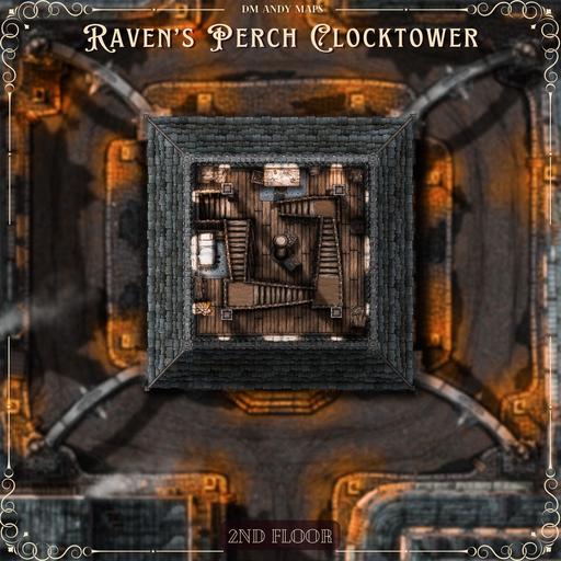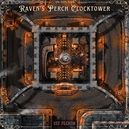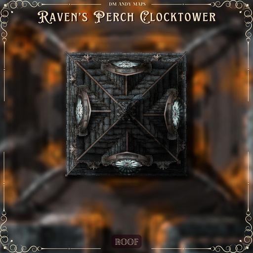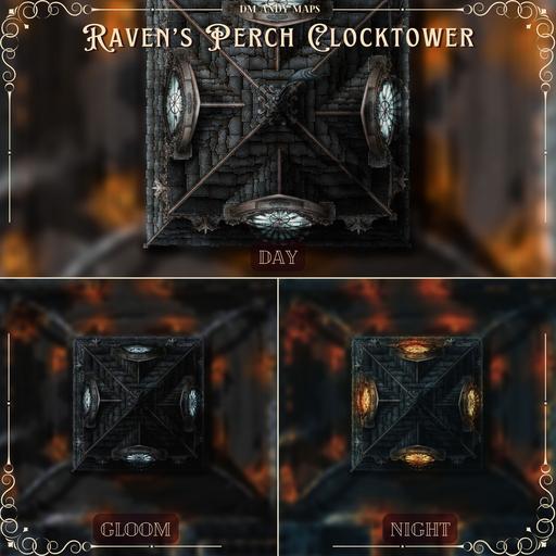 Hi everyone, and welcome to my Raven's Perch Clocktower map release! This 20x20 map is a massive pack containing 70 total map images featuring a five-level Gothic Clock Tower I've named "Raven's Perch."