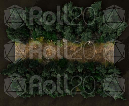 A set of 5 evergreen forest roads themed battlemaps that could fit any campaign!