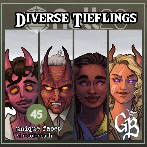 Diverse Tiefling Tokens is a pack of more than 40 unique tieflings, from a wide range of ages, genders and occupations. Every token is hand drawn. No Ai- EVER.