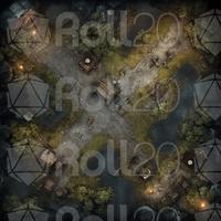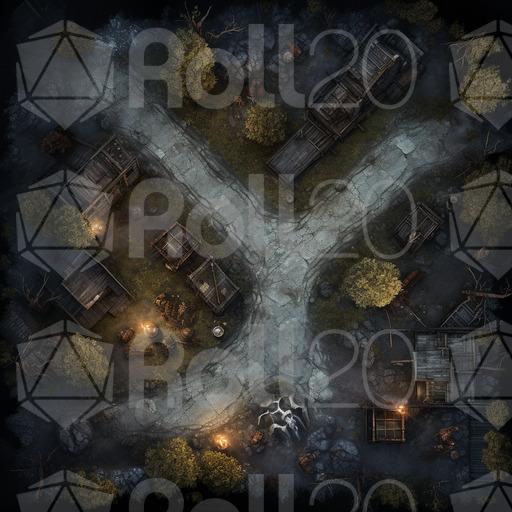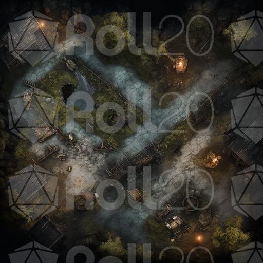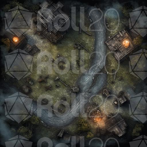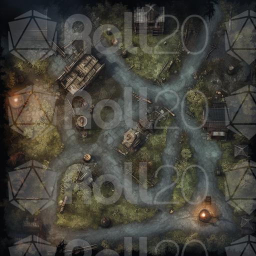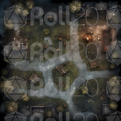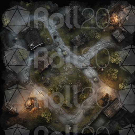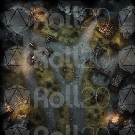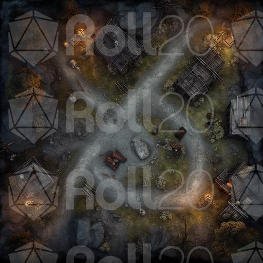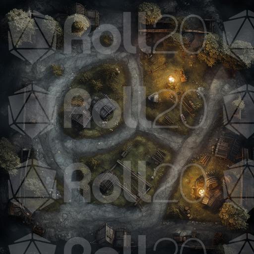 The campfire crackles in the center of the camp, casting a warm glow that dances among the shadows of the foliage. Joyful laughter and the sound of clashing swords fill the air, revealing a community of adventurers preparing for the challenges ahead. Maps scattered across a makeshift table reveal plans for far-flung expeditions, while gleaming armor and weapons are stored nearby. Flaming torches mark the perimeter of the camp, creating a luminous boundary between the safety of the encampment and the mysteries of the surrounding forest. Curious forest creatures watch silently, while local druids share advice on the region's hidden secrets.