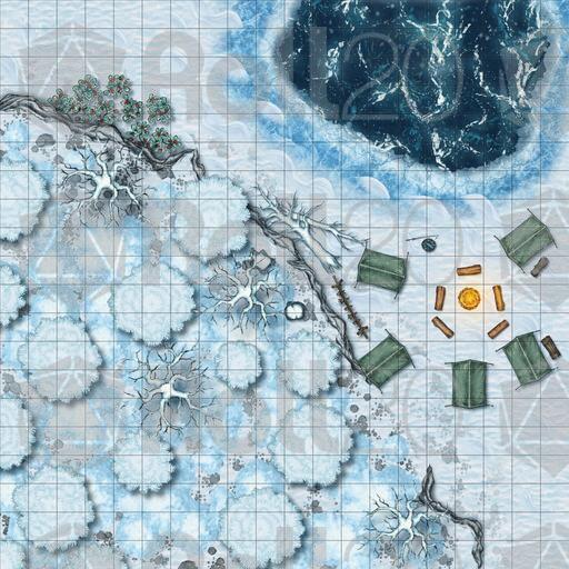 Four remastered long rest camps plus a new bonus fifth map for your long rest role-play and surprise combat encounters. Maps come in gridded, non-gridded, day, and night time. Grids are 20x20 or 10x10 for the bonus map all with 100 px/cell.