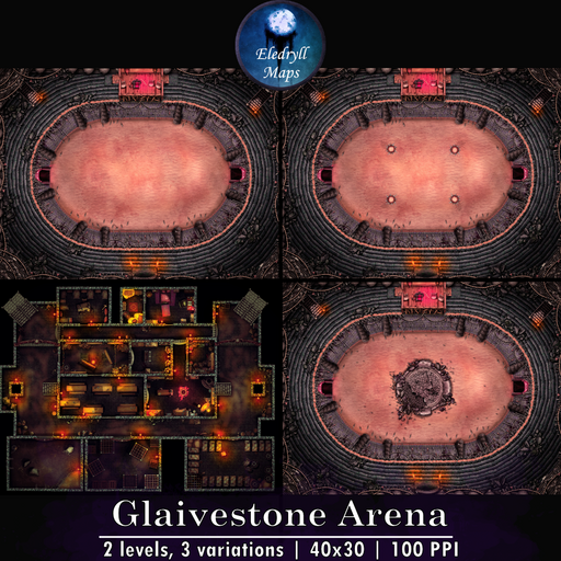 This arena was found in the cyclopean ruins of a structure which purpose was lost long ago. It was reclaimed in a distant past by knights to train their esquires and newer members before sending them to the furious battlefields. The ruin got its name from a giant glaive made of sculpted stone the knights found embedded in a rock in the middle of the arena, hence the name "Glaivestone". The order fell decades later and the glaive - just as the arena it gave its name to - were forgotten. In its more recent history, the arena was taken by a bandit troupe known as the Bloodhounds. Now, the bandits' lords organize battles for coin and joy in its bloodied pits. Fight in the stinking sands of Glaivestone and earn your freedom from the bandits' lords !