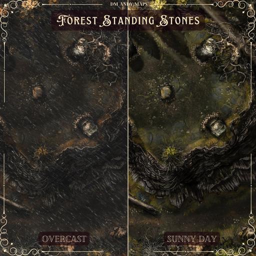 Maps like this are so versatile as you can use them for druidic rituals, cultists, forest creature encounters, or even a hidden lair under the stones themselves to an expansive dungeon. I have many options for your gameplay, as detailed below, and you're sure to find a map that will suit your forest stone needs!