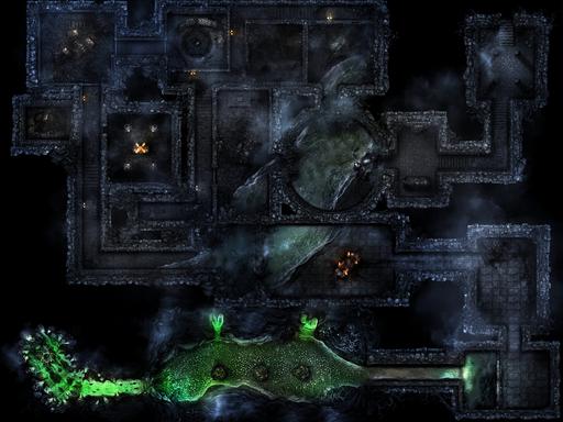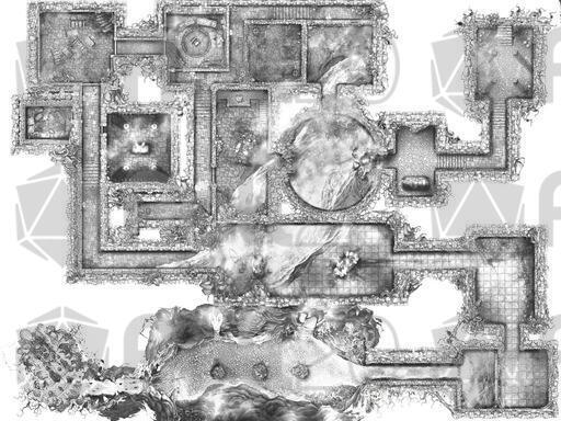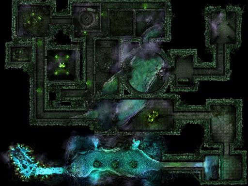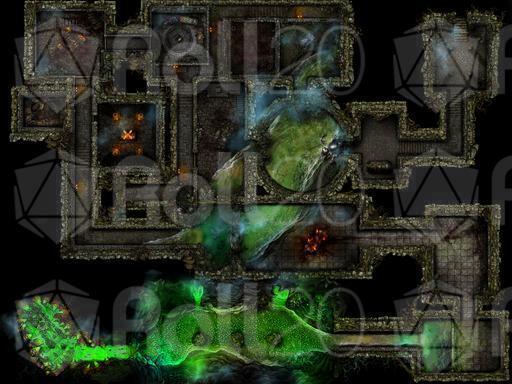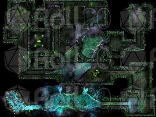 An unearthly 80x60 blighted tomb dungeon battle map and 11 gloomy variants!