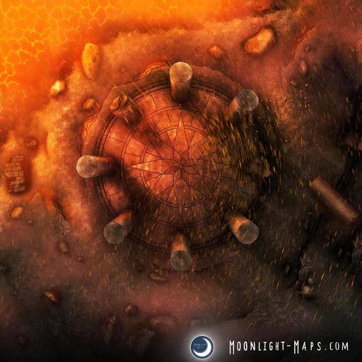 "Heat rises all around you. Every surface you touch is hot, even the pillars surrounding this relic circle. You see a recess as you glance around in desperation for a glimpse of shelter. You press your hand upon it, and although it burns greatly, leaving scorched pocks across your palm, you hear a noise. A stairway opens up below you. 'Below?! Surely it'll be even hotter down there!', someone screams. 'Well, I'm willing to risk it!, another shouts. He runs down the stairway into a huge cavernous hall, and it's remarkably cool. How this makes sense, no one knows..."