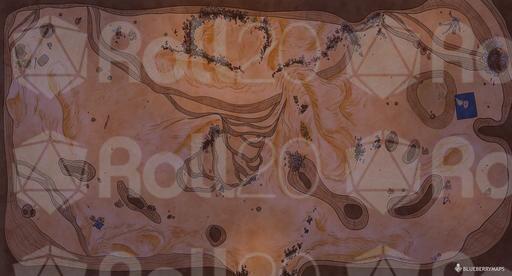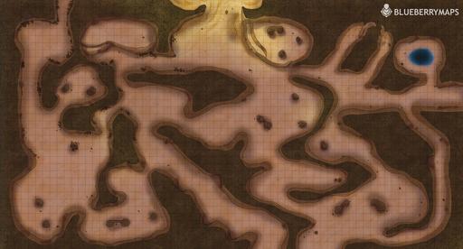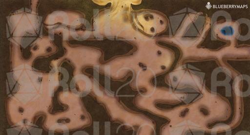 Pack with a map of tunnels excavated in sand and rocks with crystallized areas, plus the blue dragon lair, in 12 variants including grid and gridless options. Size is 65 x 35 tiles or 4550 x 2450 px.