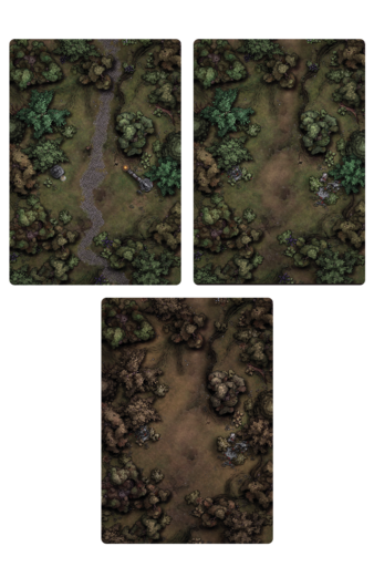 Forests are a common place to explore in grand adventures, being a link in between other many interesting locations. As such, it is always nice to add some touches to the forests, in the form of unexpected secrets to be explored. In this pack I bring you two unique locations with three variations each to fit any adventure you might have in mind