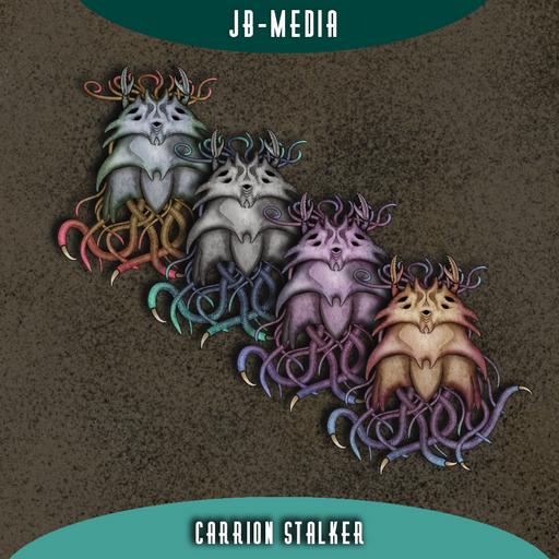 Carrion Stalker: More agile and cunning than its crawler cousin, the Carrion Stalker is a relentless predator. The token captures it mid-lunge, showcasing its elongated body and sharp, slicing legs which are ideal for slicing through armor and flesh alike.