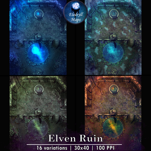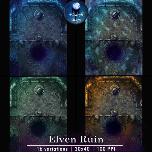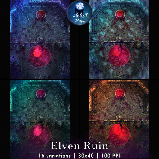 Amidst the deeper part of the woods, pillars of stone and mossy walls timidly emerge through the foliage, cold remnants of a lost elven civilization. The elven seers worship the moon as their benevolent goddess, a divine power who did not fear the dark, as it would bring comfort to her children. Now, the silent forest slowly claims its territory back.