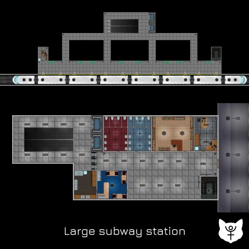 Subway station for your everyday commute or dynamic chase scene evading subway trains and other people. Two map variants one large two sided subway station and one small one sided. Contains underground section, overground section and street piece for city interconnectivity. Maps are with furnished unfurnished, lit unlit, gridded and ungridded variations.