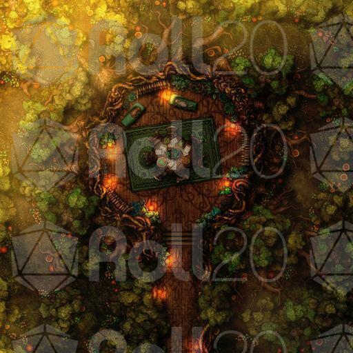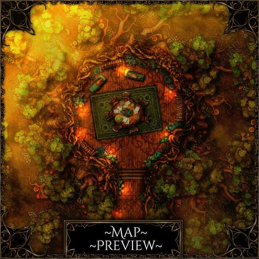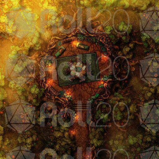 Through the thick forest branches and sweet morning dew, an ancient oak tree roars over a canopy of its brethren. Amongst its shades of green, secluded in the trunk, Wood Elves discuss the issues and developments of the surrounding forest.