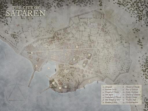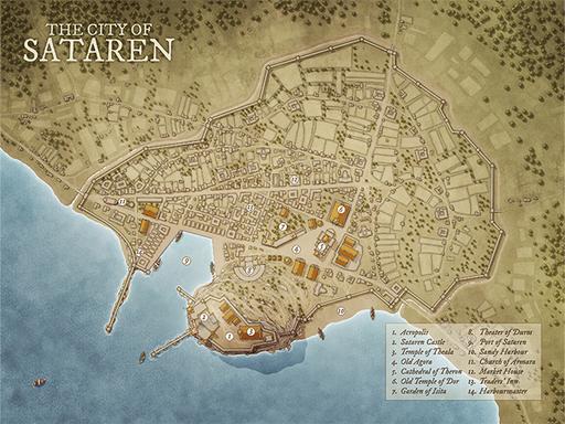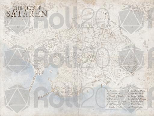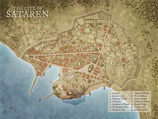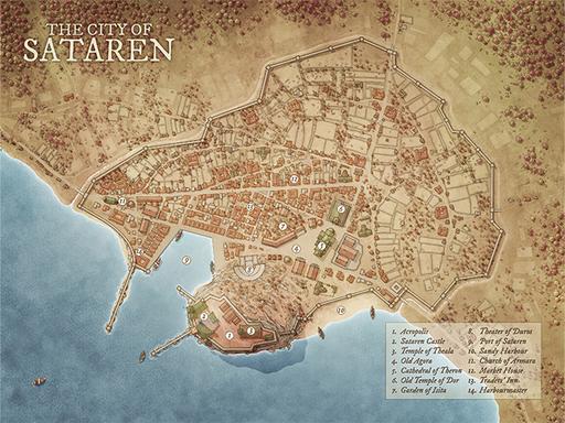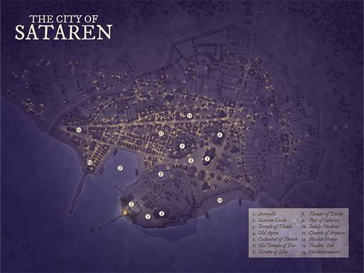 The ancient city of Sataren is one of the great cities in the Broken Bay of Preica. In a time long since passed, it was called Sataica the Vigilant, a watchful guardian of the Preic people. Long did it watch over its people, but when an alliance was forged with the neighbouring republic of Assaen, they were betrayed and subjugated. When Assaen was, in turn, conquered by the much larger Merchant Republic of Callaern, Sataica became Sataren.