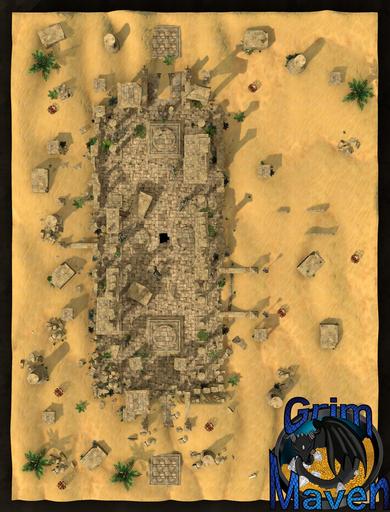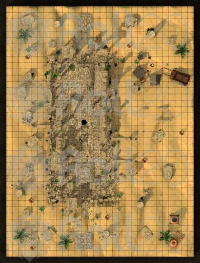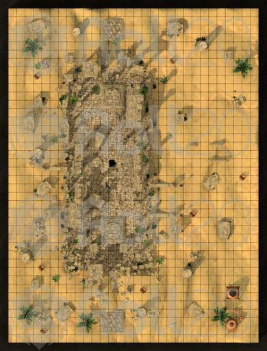 At the surface, your party will find themselves amidst ancient ruins, long forgotten and partially buried in sand. Stone statues stand as grim warnings of what lies ahead. The atmosphere is heavy with tension and the promise of danger. Will your adventurers dare to explore the broken hole in the floor that leads to the darkness below?