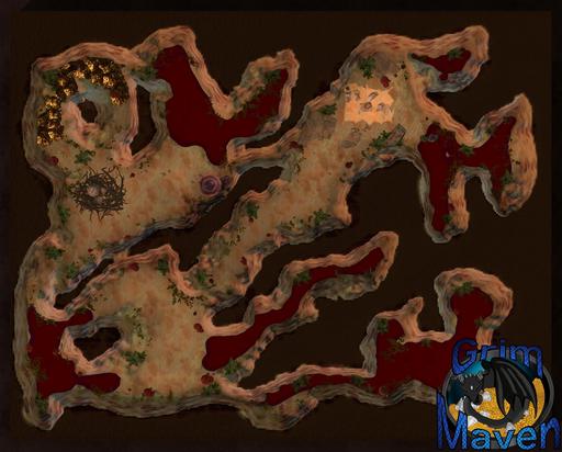 • Main Map (Day and Night): A winding, claustrophobic cavern that builds tension as your players delve deeper into the lair.