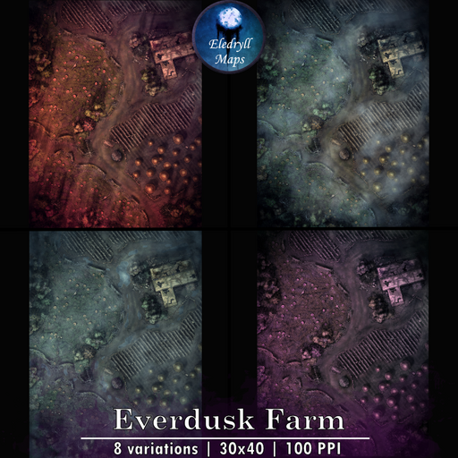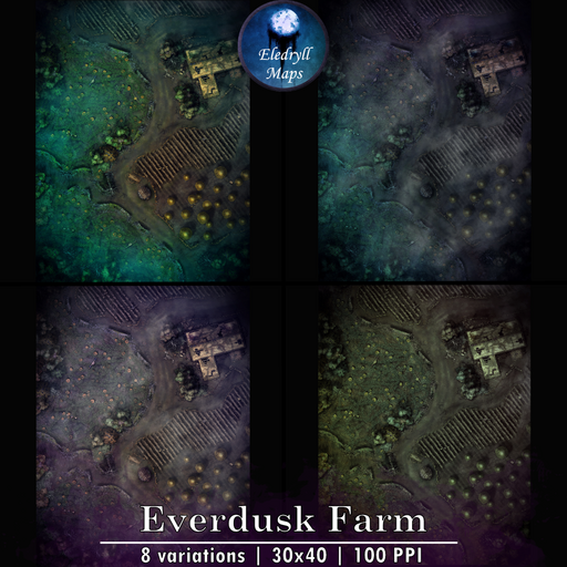 For several months now, dusk never set on this farm without sending shivers down the spine of the locals. The crops rustle in weird, rythmic patterns. The trees suddenly creak and moan all in unison. Malformed silhouettes shamble around in the fields before disappearing. The farmer and their family are now gone. Nobody really knows what happen on Everdusk Farm. You were sent to investigate at your own risk for a meager reward. As the last rays of the sunshine illuminate the dilapidated farmstead walls, you can hear a faint growling emanating from behind the treeline. It's getting closer.