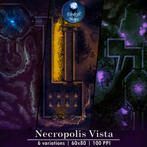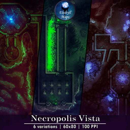 Great necromancers built this underground city. Now ruined, its occupants defeated centuries ago, it yearns for a new master. Blooming crystals, ghostly apparitions and spectral wisps roaming about may be the signs that it just found one. Be on your guard as you explore the darkened alleys and ruined bridge over the dark waters.