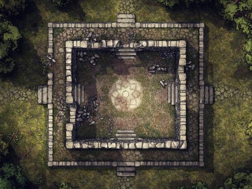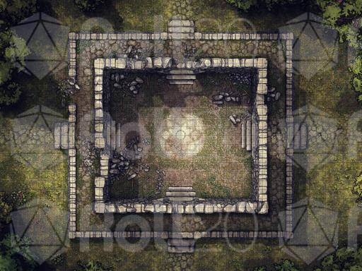 Once a place of worship, now a forgotten relic overtaken by time. Crumbling stone walls and scattered debris hint at a past long lost, while faint remnants of sacred carvings linger on the weathered floor. Nature slowly reclaims what was once divine. Is this ancient site merely a ruin, or does it still hold secrets waiting to be uncovered? Perfect for exploration, mystery, or supernatural encounters in your tabletop adventures.