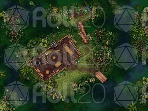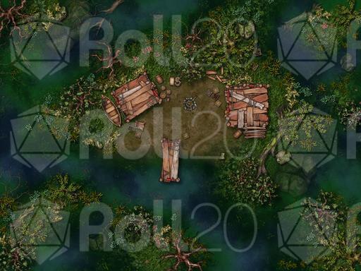 Boggy Hideout: A few small huts are tucked into the bushes of the swamp. It could a camp for be hunters or smugglers.