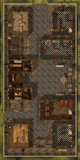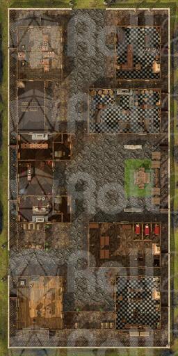 This map pack includes the area map for Grishville with labels and 3D images for journal handouts. It also includes central street and a Generic house in Grishville style.