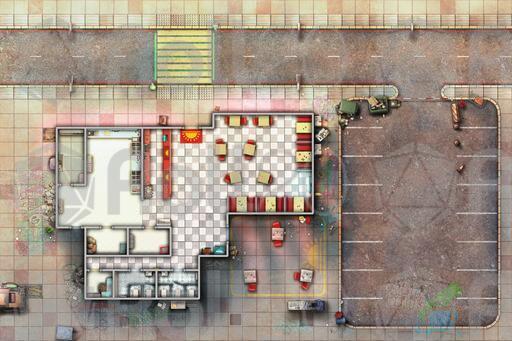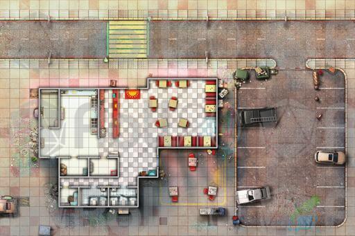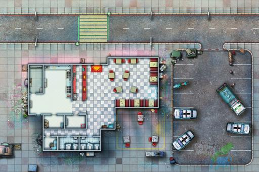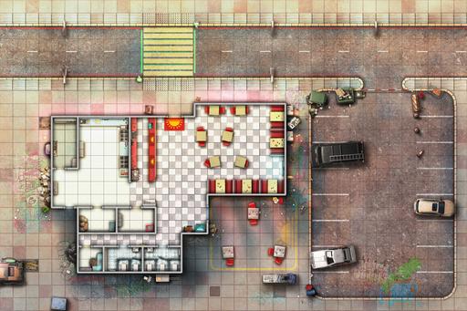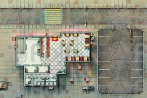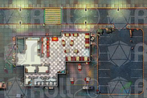 Step into the warm glow of the Sunrise Diner with this detailed cyberpunk map set. Featuring multiple map variations of this location, from bustling daytime service to late-night clandestine meetings and perhaps even a rooftop break in, this pack provides the perfect backdrop for meals, deals, and dramatic encounters in your futuristic campaigns.