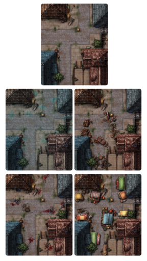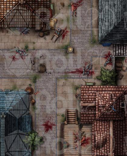 Many different stories can be crafted in the streets of a city or town. Mysterious encounters, dangerous ambushes, gossip, goods from local merchants… whatever it is, this town intersection map pack will help you create those stories! 🏙️📦🏠