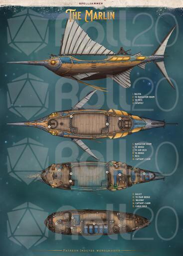 the smallest spelljammer of the human fish fleet, but despite its small size, this little ship is highly prized by many fleets for its speed and manoeuvrability, making it one of the most capable hunters and an unrivaled scout. Able to outrun much better-armed ships in the blink of an eye, it is also often used as a smuggler's vessel. Its versatility and ability to land as well on land as at sea means it is also highly prized by small groups of adventurers looking for a discreet, fast vessel that can go unnoticed in most Astral ports or planets.