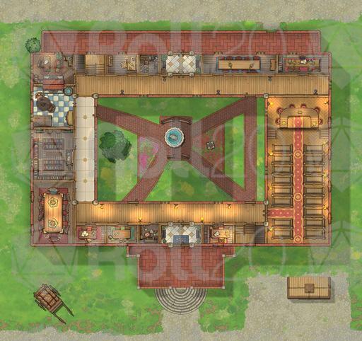 This large two story brick building contains offices of the town council and the chamber where they meet to discuss the town business. The hall is built from sturdy stone from the nearby cliffs and hardwood from the nearby Hool Marshes. A wooden sign depicting a net filled with fish hangs above the double doors leading into the hall. A small tower rises from the building, housing a bell which is rung to announce the beginning of a council session or other significant events.