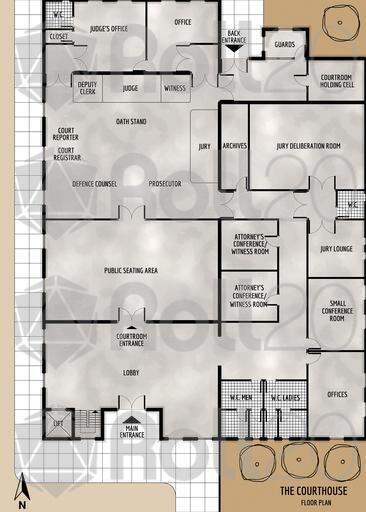 In the somber town of Arkham, deep within the darkened heart of New England, there stood a courthouse. A brooding edifice of stone and iron, with tall columns and an ornate spire that reached toward the murky skies above. Within its shadowed halls, the only sound was the occasional creak of old floorboards and the rustle of papers.