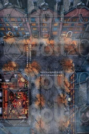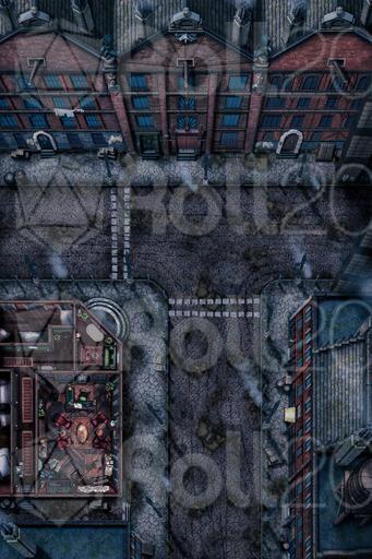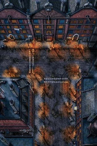 This map features the weathered streets of the Central District, complete with looming brick buildings and muddy cobblestone streets.