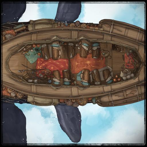 the perfect creature to ambush at water's edge. Smuggling, hunting, Mercenaria, this monster of speed and power is capable of it all. This 2-storey craft is perfect for accommodating 4 to 8 adventurers for long adventures across vast lands.