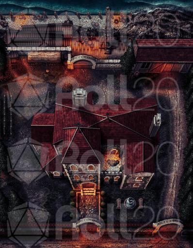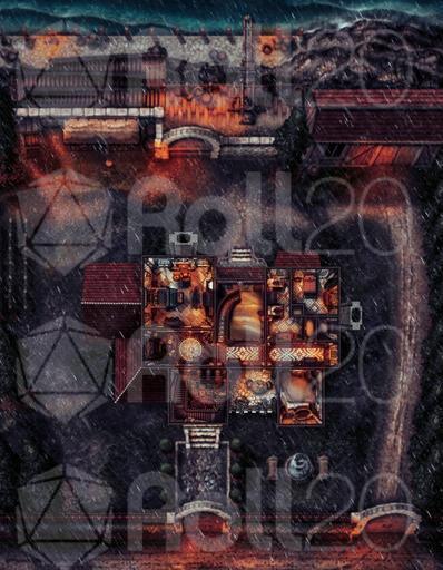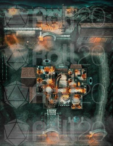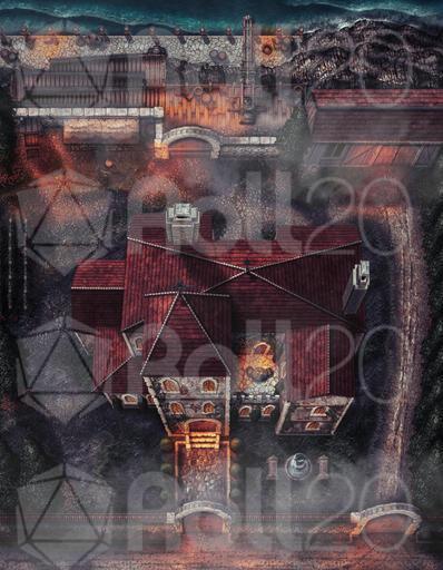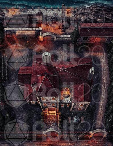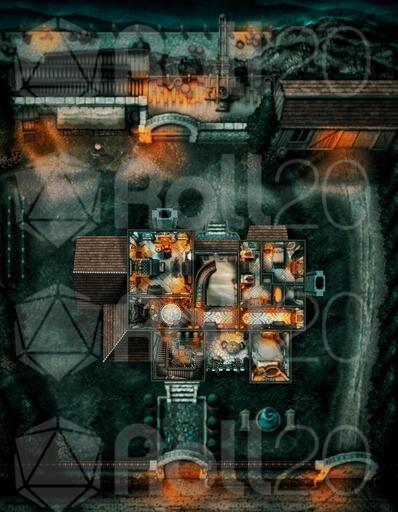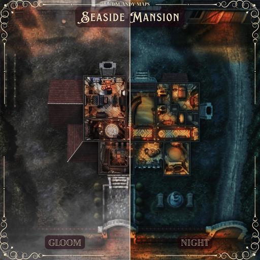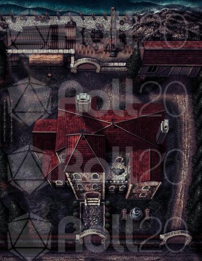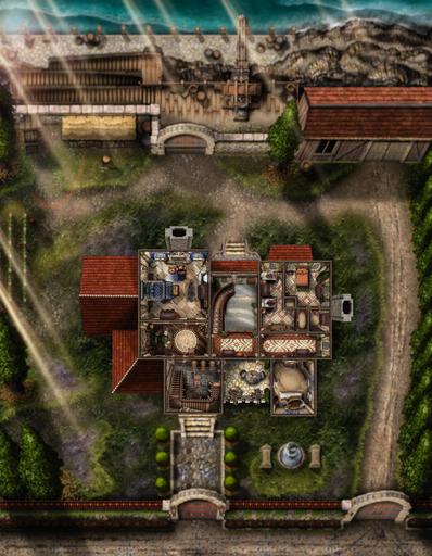Whether your adventurers are attending a high-society banquet, investigating suspicious activity, or planning a daring infiltration, this map provides tons of possibilities across multiple floors. The interior includes a grand dining hall, study, bedrooms, and servant quarters, while the exterior features a gated entrance, stables, small vineyard, an overlook to the harbor, and access to the private dock below.