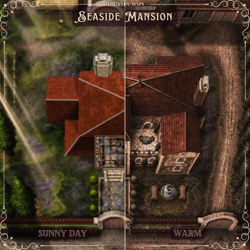 Hi everyone, and welcome to my Seaside Mansion map release! This 35x45 map is a lavish estate of a wealthy coastal shipping magnate. This sprawling seaside mansion offers a perfect setting for intrigue, diplomacy, or deception. Perched atop a bluff overlooking the harbor, the estate includes richly furnished rooms, a private dock, and a lush courtyard vineyard— ideal for both noble gatherings and secret dealings.
