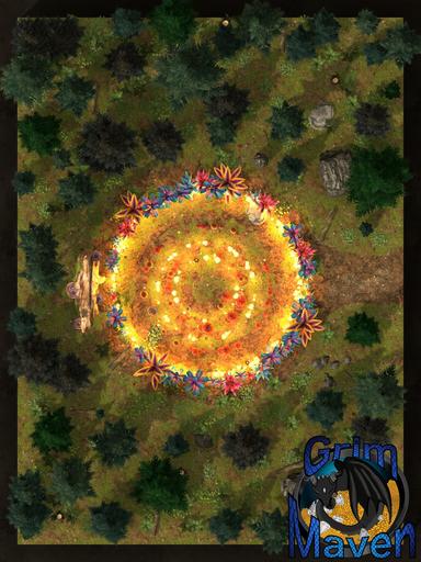 Hidden deep within an ancient forest, Fairy Circle is a place of wild wonder and untamed power. A ring of mushrooms and softly glowing candles surrounds a mysterious portal, humming with energy that predates mortal memory. Whether your party arrives by accident or intention, this map is ideal for fey bargains, ritual encounters, or otherworldly danger that bends the rules of reality.