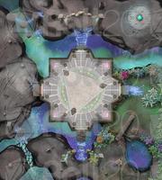 The map is a dreamlike arena with strange gates leading to surreal, otherworldly trial zones—like pocket dimensions or parts of the Astral Plane. Players must complete four emotion-based trials to activate the central portal.