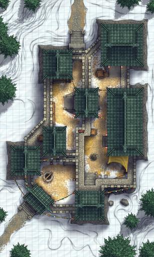 A riverine Chinese-inspired fortress battlemap for defending trade routes, guarding river crossings, collecting customs fees & holding ransom any local hostages! No matter whether in a local village or on the frontier, a sturdy wall & defense-in-depth will protect the Emperor's interests ... & his local commander.