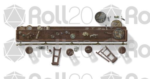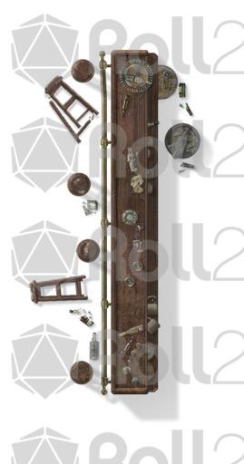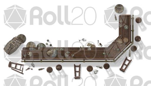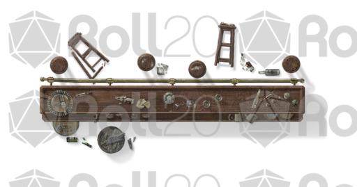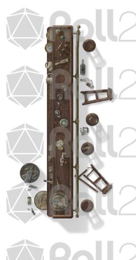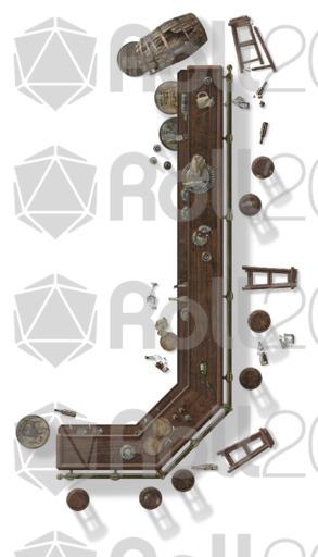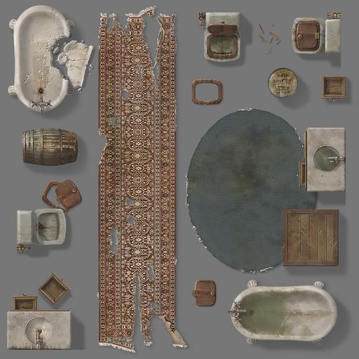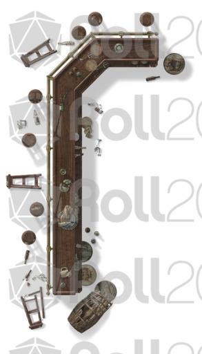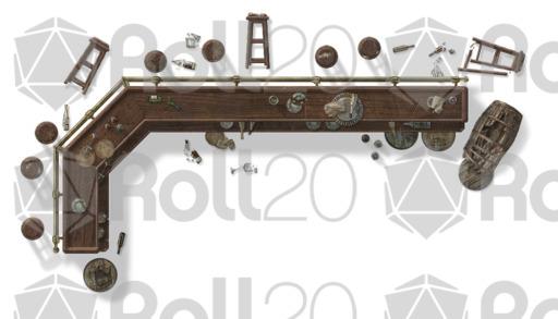 This set features more tables, chairs, sofas, rugs, and bathroom furniture. In addition, there are two bars with dozens of broken bottles, barrels and glasses to really mess things up. Each object has rotated versions to preserve realistic shadows... or use the 'no shadow' version (indicated in the file names with ns) to give you more options to rotate your furnishings on your maps.