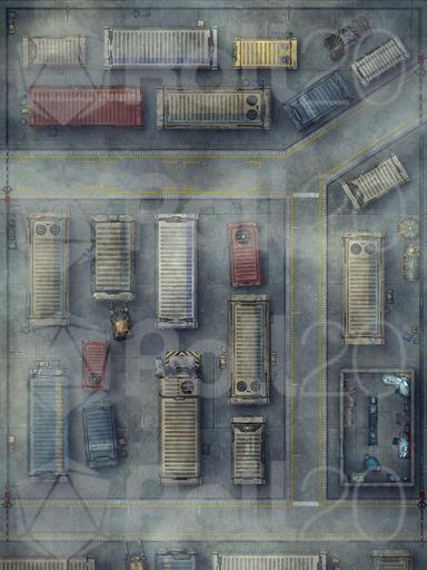 This map features a maze of shipping containers bisected by streets. A small control room holds the gate switches and potentially valuable information about this place. Storm and Abandoned (Fallout) variants are available. All patrons get access to gridded/ungridded and high-resolution maps.