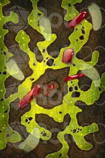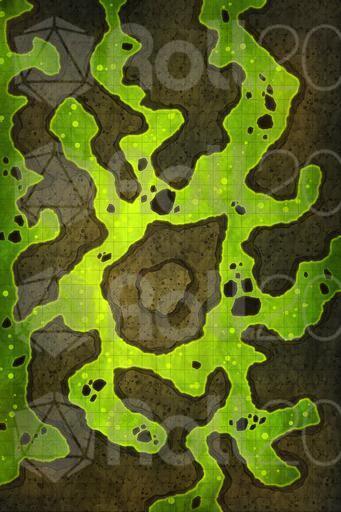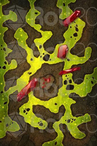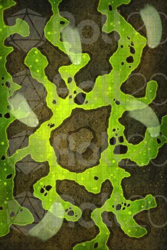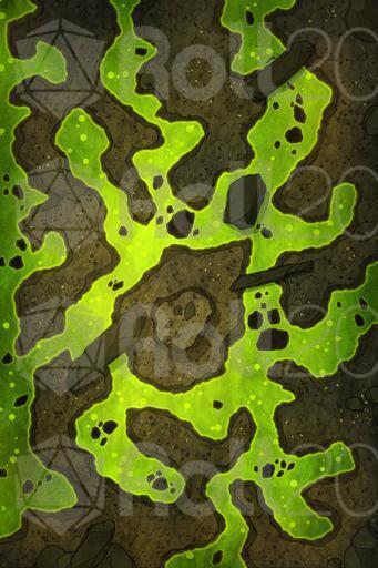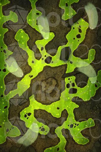 After descending several levels into the ancient dungeon, the heroes reach a chamber warmer, denser, and quieter than the ones before. The air burns in their throats, heavy with acidic fumes rising from the ground. The floor is almost entirely covered in a green, bubbling substance that dissolves everything it touches.